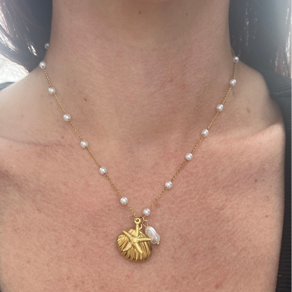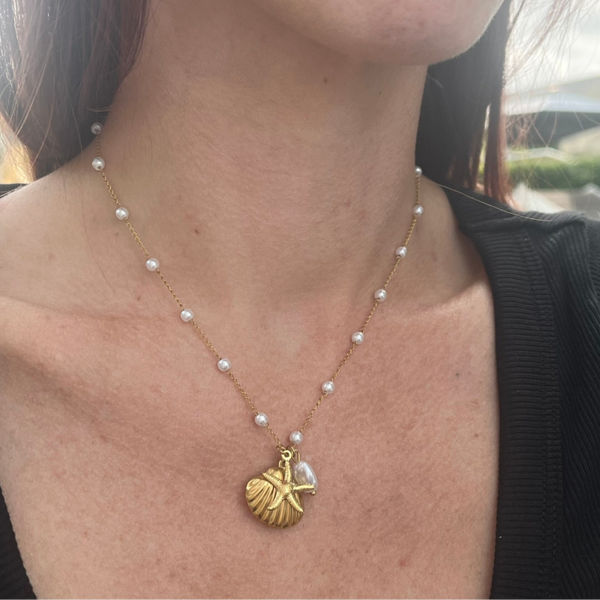 Gold Shell & Pearl Necklace