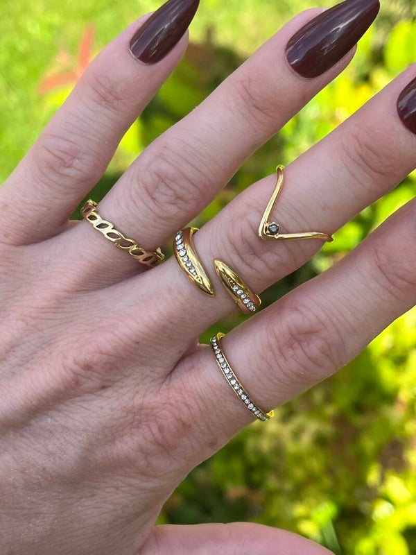 Gold Black Zircon Dainty V Ring