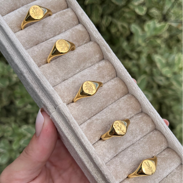 Gold Sunflower Signet Ring