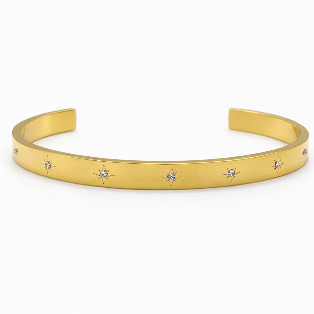 Gold Silver Zircon Star Bangle Cuff