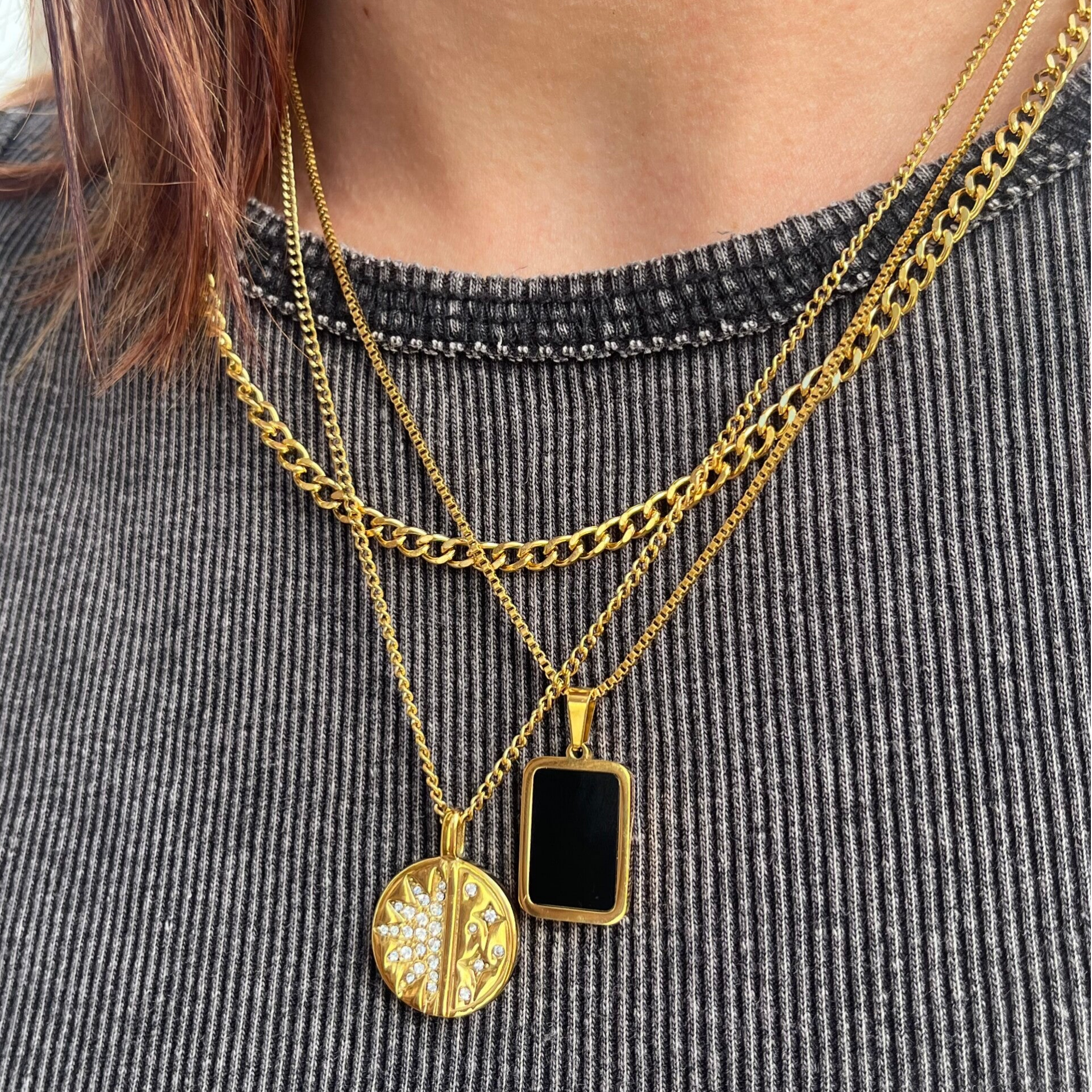 Black Enamel Pendant Gold Necklace